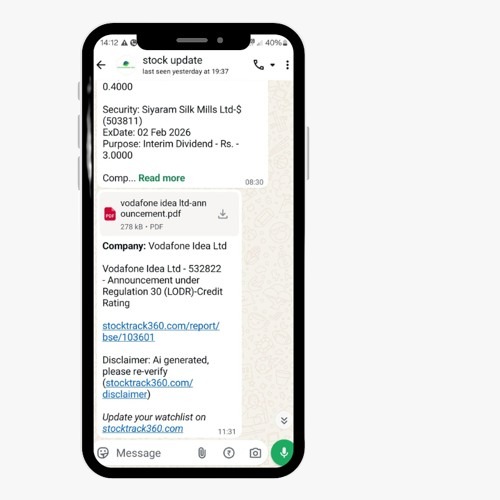 Stock Track 360 is especially useful for investors who do not want to keep checking the market all day. Its platform sends real-time, AI-powered stock alerts straight to WhatsApp and scans announcements, news, tweets, research, and other sources so you receive only the relevant, time-sensitive updates for the stocks you track. For an investor, that means less noise, faster awareness, and a cleaner way to stay on top of market-moving developments.